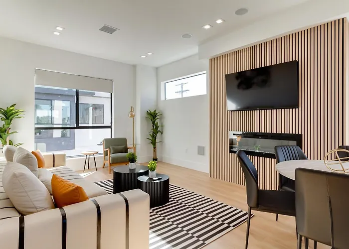 Le opzioni per la ristorazione includono un angolo cottura attrezzato con un microonde, utensili da cucina e una vetreria, oltre a servizi per la preparazione di tè/caffè. Gli ospiti possono cenare al ristorante Es Con Sabor, situato a a breve distanza dalla struttura. La villa è raggiungibile in auto in 17 minuti dall'aeroporto Internazionale di Los Angeles.